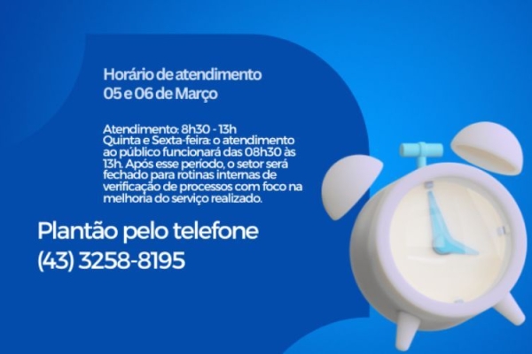 Horário de atendimento alterado