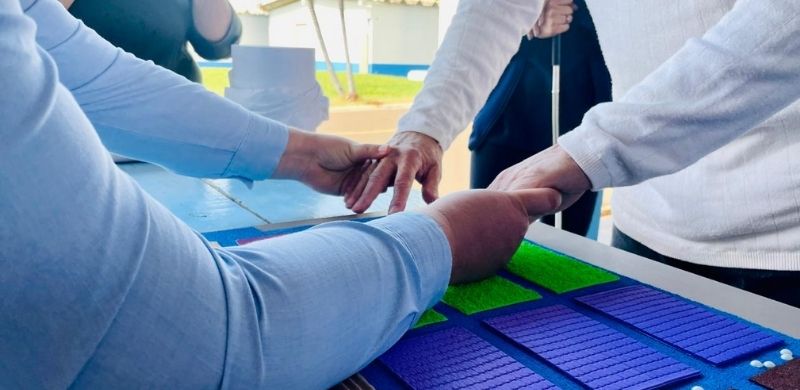 Durante a visita, os participantes passaram por experiências sensoriais por meio de mapas de alto relevo e estruturas táteis elaboradas especialmente para dar apoio na explicação de como funciona o serviço de saneamento na cidade, incluindo o tratamento de água, coleta e tratamento de esgoto e coleta de resíduos sólidos. Segundo a servidora Élida Mara de Paula, que está há 9 anos no SAMAE e guia as visitas inclusivas, os materiais foram criados especialmente para a iniciativa.